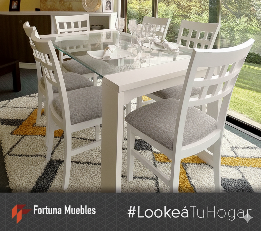 mesa cromo vidrio de 1mts,60 o 1mts,80 , acompañado por sillas modelo Teresa